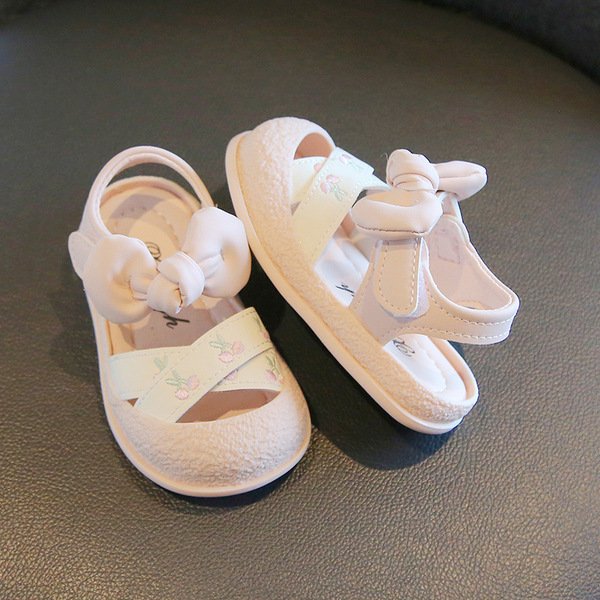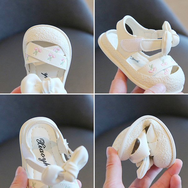 Cute Baby Girls Soft Sole Bow Sandals with Cherry Embroidery – Pink